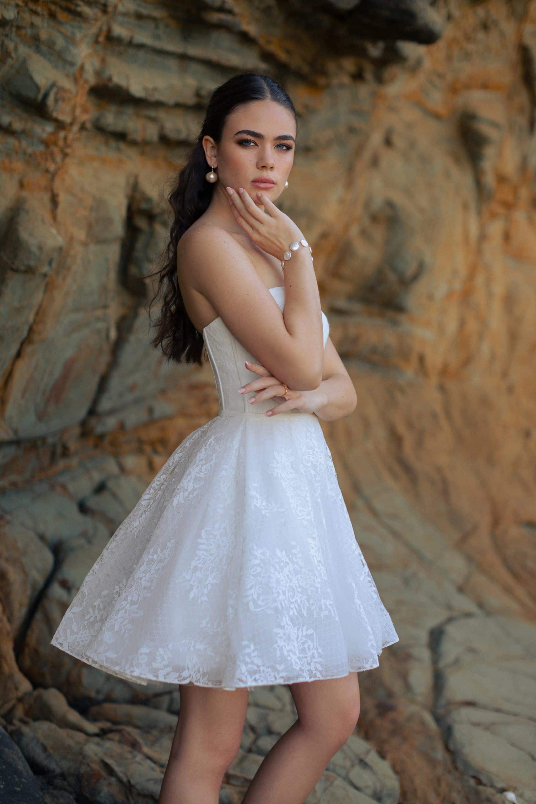 שמלת הכלה “Tulip” היא הבחירה המושלמת לשמלת ריקודים – קלילה, נשית ומלאת קסם. עם מחוך סטרפלס שמחמיא לגוף, וחצאית קלוש מלא שמוסיפה תנועה וזוהר, השמלה משדרת אווירה רומנטית ושמחה. תחרה עם מוטיבים פרחוניים אביביים מוסיפה לשמלה רוך ואלגנטיות, ויוצרת מראה קליל ושמח שמתאים לכלה שרוצה לרקוד בחופשיות ובזוהר ביום הגדול שלה.