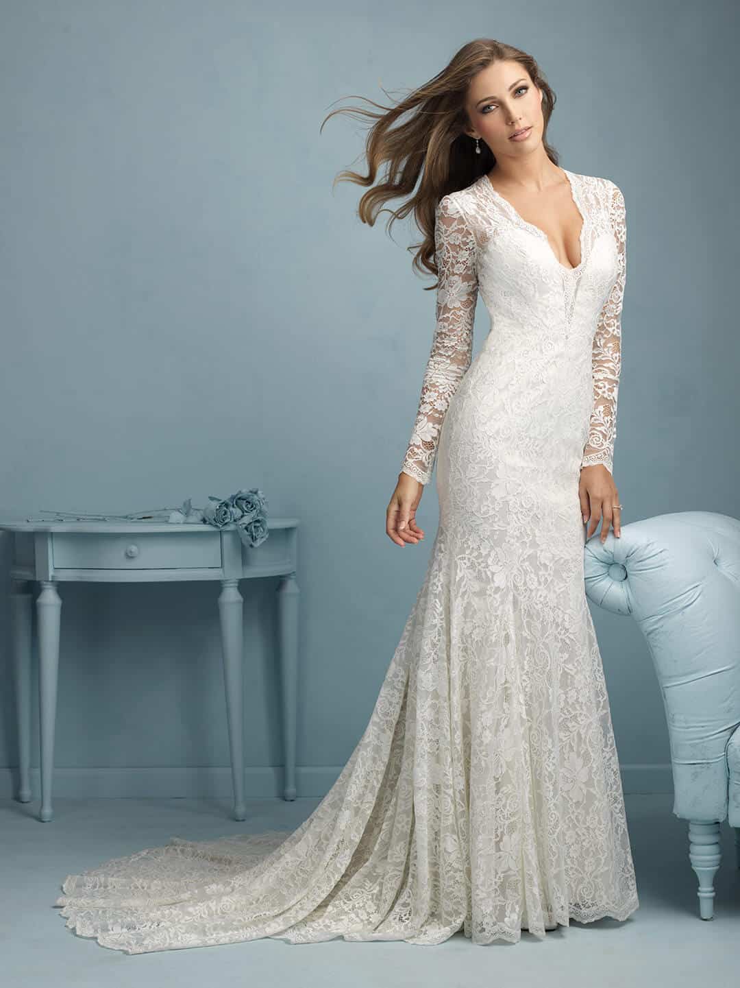 שמלת כלה מתחרה עם שרוול ארוך